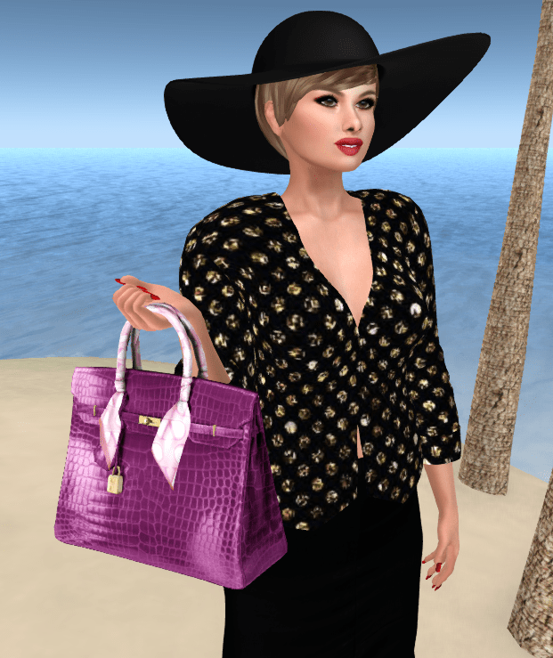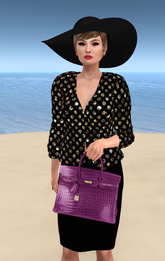 - Skirt: Black pencil skirt from the Roxy outfit (a free gift from a store called Chaotic; just look for the store vendor with the FREE sign above it (exact SLURL) and pay the vendor L$1 for dozens and dozens of gifts of of women’s outfits and Slink footwear; no group is needed, and your Linden dollar will be automatically refunded).