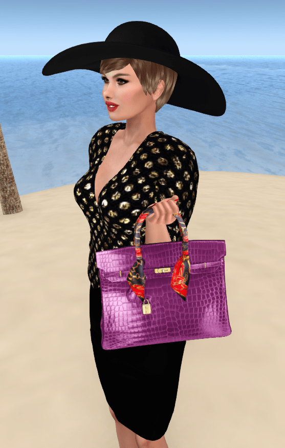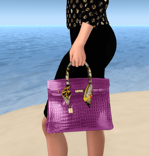 The best thing about this bag is the absolutely wonderful variety of hold animations, as you can see! There’s also a HUD to change the texture of the scarf wrapped around the handle of the bag (or remove it completely), and have it closed, or open with wads of cash sticking out 😉 ; please click on each thumbnail to see a larger version of the pictures.